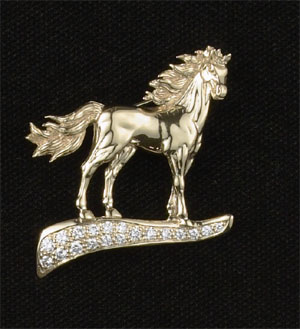 If you want your horse jewelry to be fashion forward and trend aware, you want to be wearing gold this spring! Designers from Milan to NY are bringing out some innovative pieces in gold. There’s a strong interest in figural work, such as this 14K Gold Horse of the Winds pin. Note the flowing mane and tail: you can almost feel the breeze whipping! Dynamic design and fine craftsmanship ensures this is a piece that will serve you through this season and beyond!